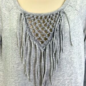 American Eagle - Grey Macrame Fringe Design Long Sleeve Sweatshirt Size Small