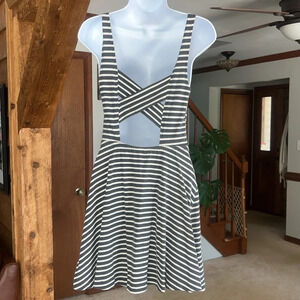 American Eagle Grey | White Striped Criss Cross Back A-Line Dress Size Small