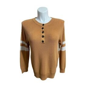 American Eagle Henley Sweater Medium Orange with Varsity Stripes Relaxed Fit Pullover