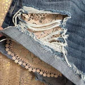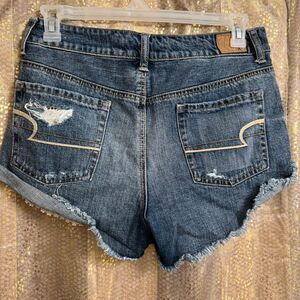 American Eagle Hi Rise Crochet Pocket Boho Distressed Festival Shorts 10