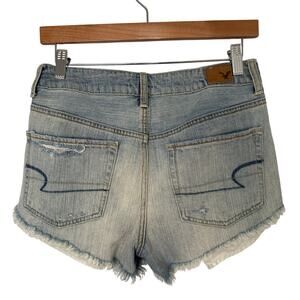 American Eagle Hi Rise Festival Boho Denim Cut Off Frayed Shorts Blue 4