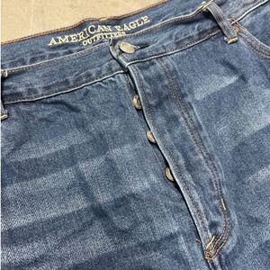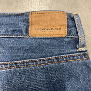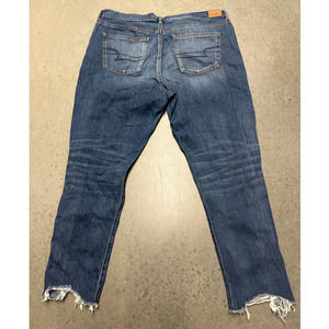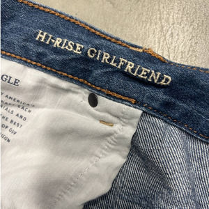 American Eagle Hi Rise Girlfriend Jeans Womens 20L Blue Distressed Frayed Hem