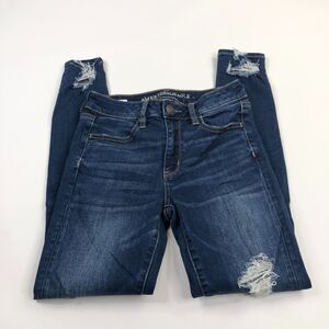 American Eagle Hi Rise Jegging 4 REG (Actual 27W 28.5L) Cut Off Distressed Jeans