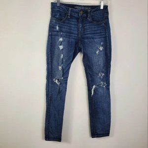 American Eagle Hi Rise Jegging Next Level Stretch Distressed Dark Wash Comfort,