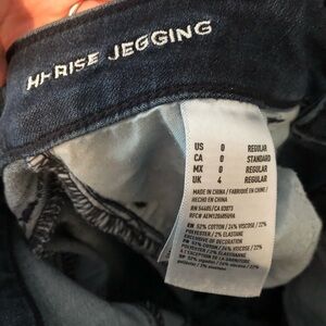 American Eagle Outfitters high rise jeggings. Size 0 regular. There is some puckering/stretching shown in pictures, otherwise good condition.