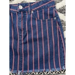 American Eagle Hi Rise Mini Denim Skirt Womens Size 6 Blue Striped Americana 1