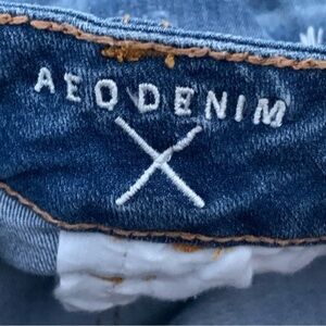 American Eagle Hi Rise Shortie Blue Jean Shorts Super Stretch Distressed Holes