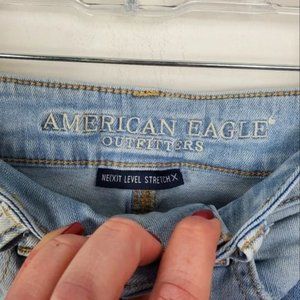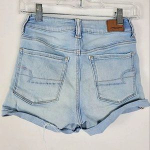 American Eagle Hi Rise Shortie Jean Short Womens Size 2 Light Wash Next Level