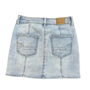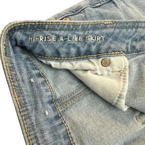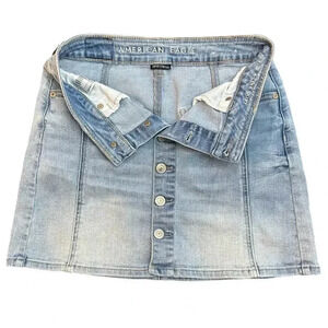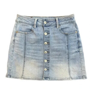 American Eagle Hi-Rise A-Line Denim Mini Skirt Button Front Size 2 Stretch