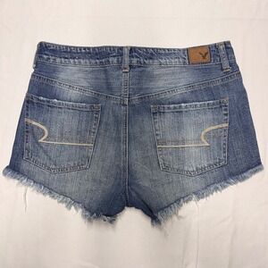 American Eagle Hi-Rise Festival Denim Shorts Frayed Hem Embellished Size 10