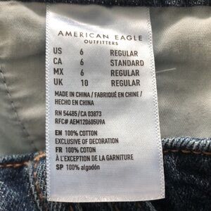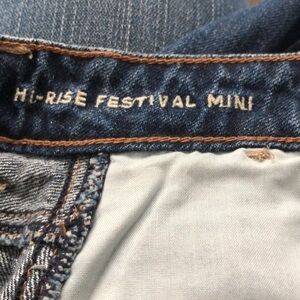 American Eagle Hi-Rise Festival Mini Jean Skirt. 100% cotton. Big back pockets. Great used condition no stains or rips. Size 6. Waist 30”. Length 14”.