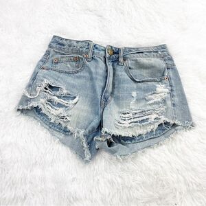 American Eagle Hi-Rise Festival Distressed Cut-Off Denim Shorts