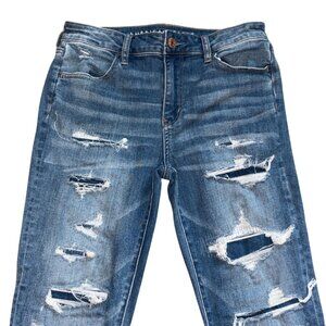 American Eagle Hi-Rise Jegging Crop Denim Jeans-Blue-Size 10-GUC