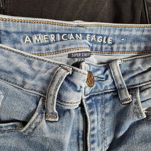 American Eagle Super Stretch Hi-Rise Jegging Crop in size 0 Regular. Light wash with heavy distressing down the legs and mild wear on back pockets. Soft, stretchy fit with a cropped skinny leg. Super comfortable and flattering. Pre-owned with intentional distressing—no flaws beyond design.