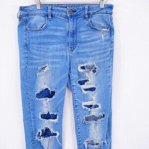 American Eagle Hi-Rise Leggings Super Stretch Distressed Blue Jeans 12R 30 / 28