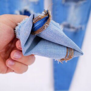 American Eagle Hi-Rise Leggings Super Stretch Distressed Blue Jeans 12R 30 / 28 Cotton Polyester Elastane Jegging Denim Whiskering Stone Wash