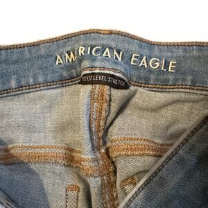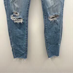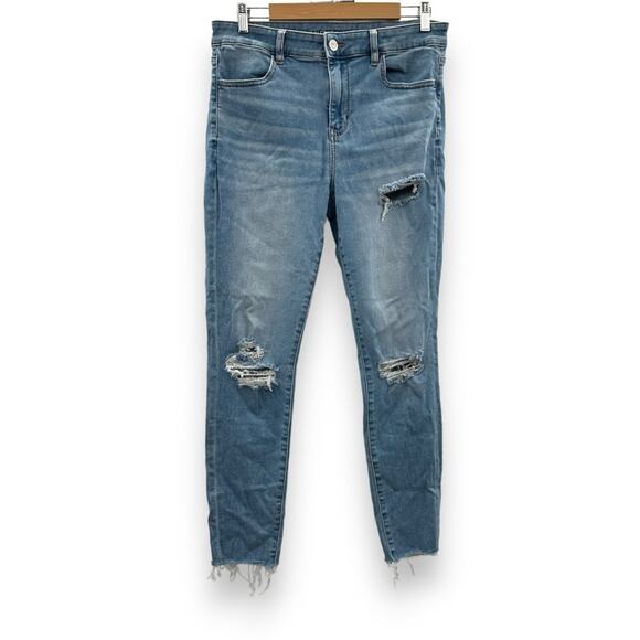 American Eagle Hi-Rise Light Wash Distressed Raw Hem Skinny Jegging Jeans Sz 14