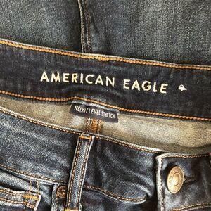 American Eagle Hi-Rise Mini denim dark Wash skirt raw cut hem size 6