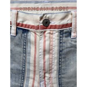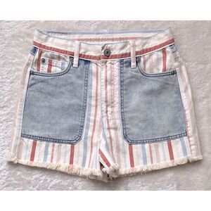 American Eagle Hi-Rise Mom Short in Red White & Blue Stripes Patchwork Denim