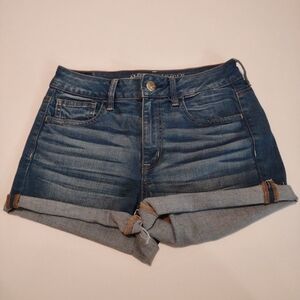 AEO Denim jean shorts. medium wash, cuffed hem (can be taken down). Super stretch material
