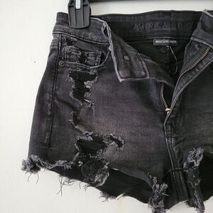 American Eagle Hi-Rise Shortie Black Distressed Shorts Raw Hem 4