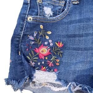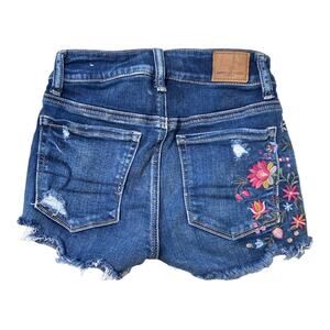 American Eagle Hi-Rise Shortie Stretch Floral Embroidered Jean Shorts Size 00