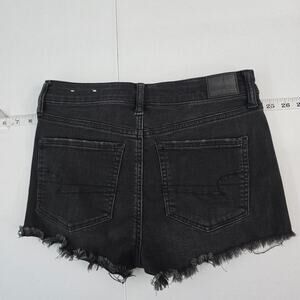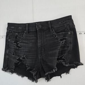 American Eagle Hi-Rise Shortie Women's 8 Black Distressed Denim Jean Shorts 6245