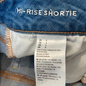 F: Sz 4. Distressed. Raw hem Good used condition- scuffed front button.