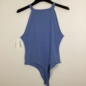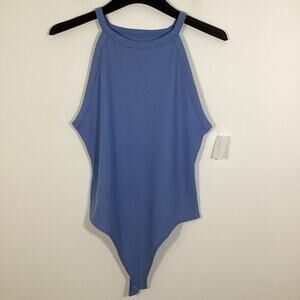 American Eagle High Neck Halter Top Body Suit Blue XL Knit Ribbed Stretch NWT