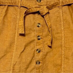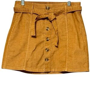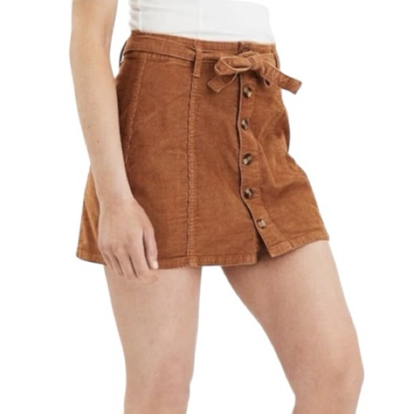 American Eagle High Rise A Line Corduroy Y2K Button Front Belted Tie Waist Skirt