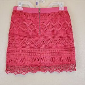 American Eagle High Rise Crochet Lace Boho Salmon Pink Mini Skirt