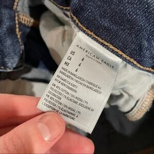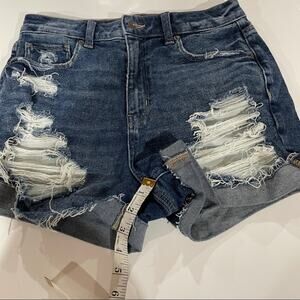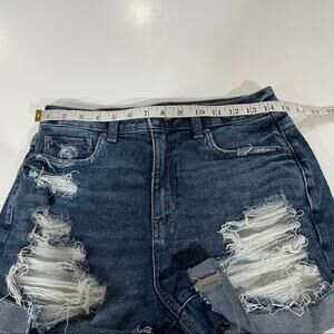American Eagle High Rise Distressed Dark Wash Mom Denim Jean Shorts Size 6