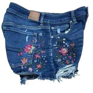American Eagle High Rise Embroidered Shortie Shorts size 12 distressed