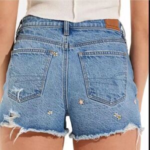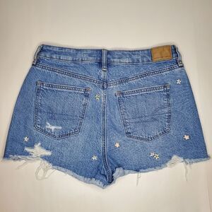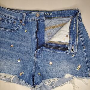 American Eagle High Rise Floral Embroidered Distressed Denim Mom Shorts Size 6
