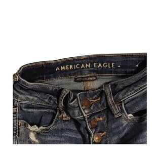American Eagle Jegging Womens Size 0 Short Stretch Dark Wash Distressed Denim.