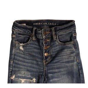 American Eagle High Rise Jegging Women Size 0 Short Dark Wash Stretch Distressed
