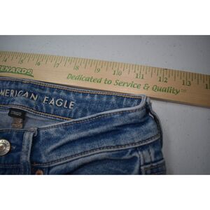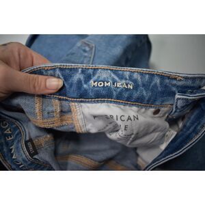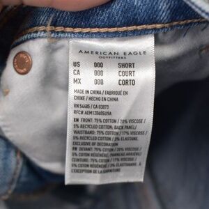 American Eagle High Rise Mom Jeans Medium Blue Distressed Knees 000 Short