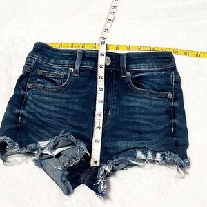 American Eagle High Rise Shortie Dark Wash Distressed Denim Shorts Size 0 Blue