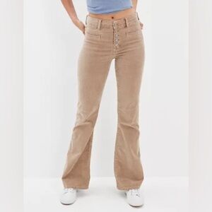 American Eagle High Rise Stretch Corduroy Flare Pants Beige Size 12 Short