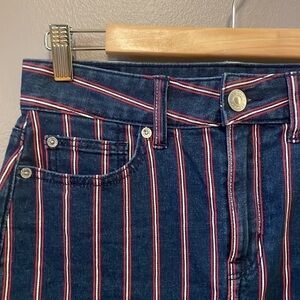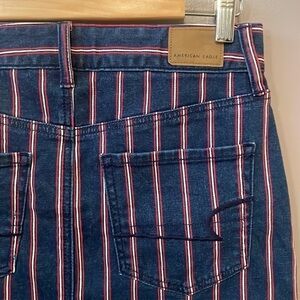 American Eagle High Rise Striped Denim Mini Skirt | Size 2
