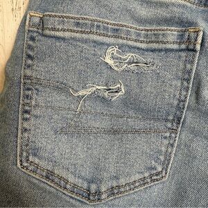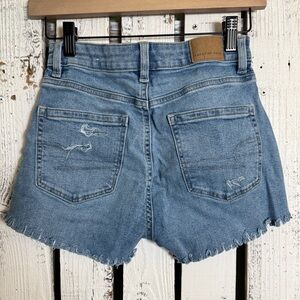 American Eagle High Waist Cut off Denim Blue Jean Shorts Raw Hem Size 0 Stretch Grunge Boho