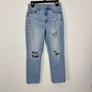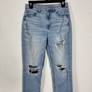 American Eagle High Waisted Distressed Straight Leg Mom Jeans