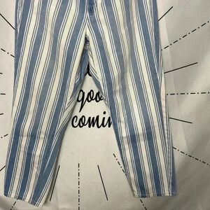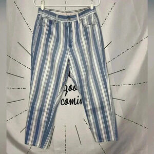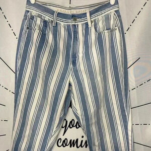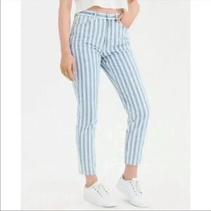 American Eagle High Waisted Striped Blue & White Mom Jeans