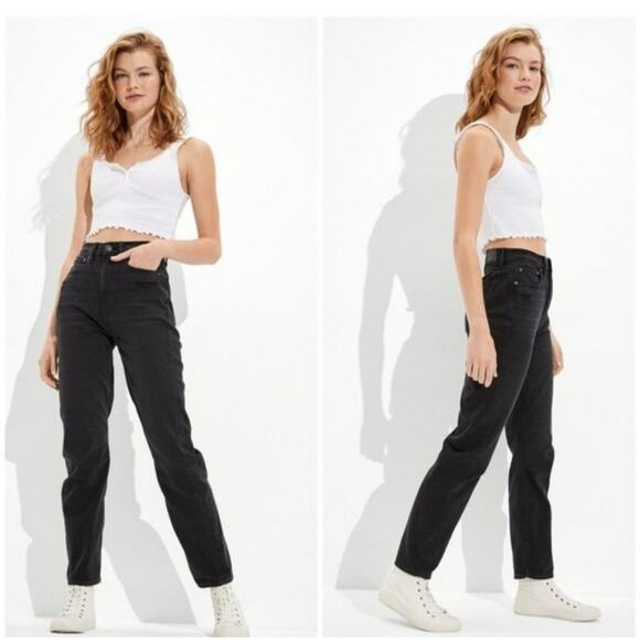 American Eagle Highest Rise 90s Boyfriend Distressed Black Jeans Women's 6