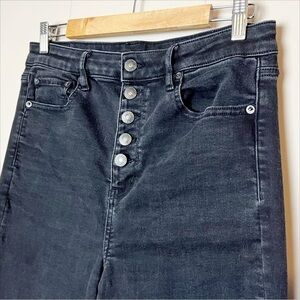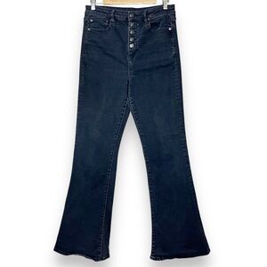 American Eagle Highest Rise Flare Jeans 10 washed black stretch button fly