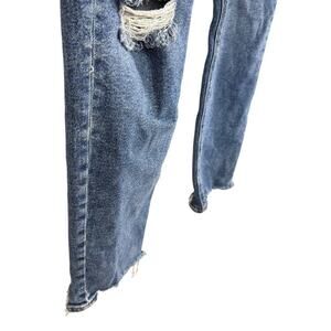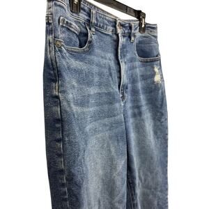 American Eagle Highest Rise Mom Jeans Stretch Raw Hem Distressed sz 12 / X-Long