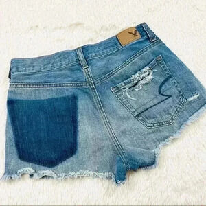 American Eagle Highrise Festival Patchwork Distressed Frayed Denim Short Size 2