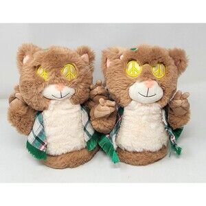 American Eagle Hippie Peace Cat Slippers House Shoe Plush Size M/L