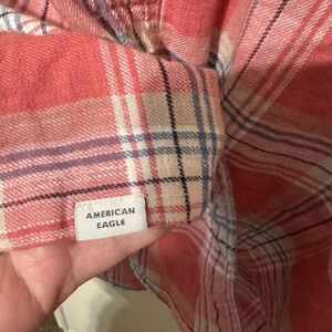 American Eagle Hooded Flannel Shirt Mens Size L pink plaid super soft grunge