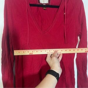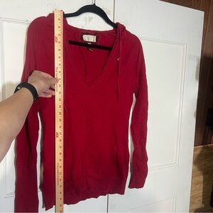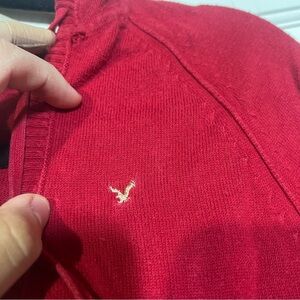American Eagle Hooded V-Neck Sweater Red Size Large Gold Logo